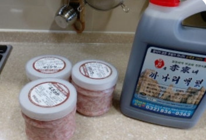 절임배추가 도착하기 전날, 미리 육수를 끓이고 찹쌀풀을 만들어 완전히 식혀두는 게 중요해요. 황태나 명태 머리 2개, 디포리 40g, 다시마 20g, 무 400g을 물 3리터에 넣고 끓여서 육수 1리터를 만듭니다. 찹쌀 1컵에 물 15컵을 넣고 저어가며 끓여서 찹쌀풀 900g을 만들어주세요.