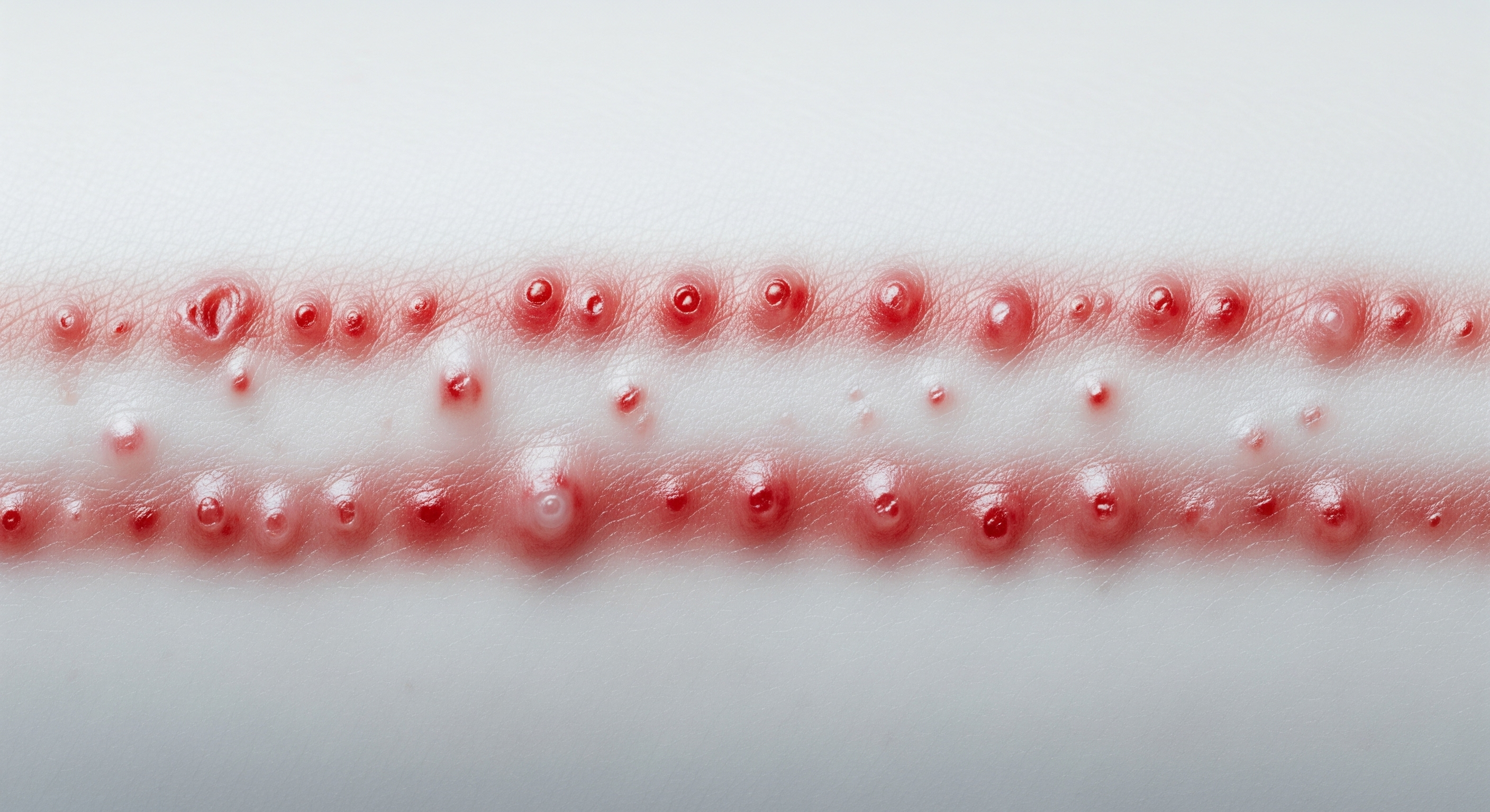 통증이 시작되고 1일에서 5일 정도 지나면, 아팠던 부위를 따라 붉은 반점이 돋아나기 시작합니다. 이 반점들은 몇 시간 지나지 않아 여러 개의 물집, 즉 수포가 무리 지어 나타나는 형태로 발전합니다.