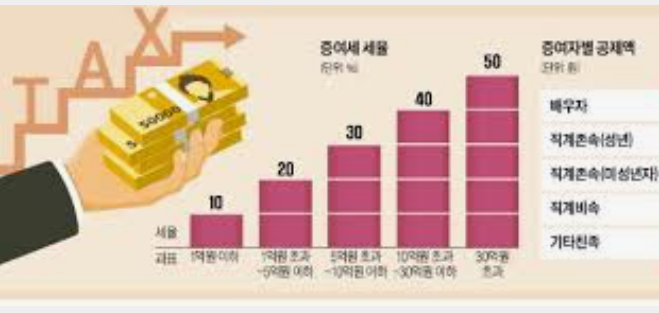증여세는 증여받은 재산에서 공제액을 뺀 과세표준에 누진세율을 적용하여 계산합니다. 증여세 면제 한도액을 초과한 금액에 대해서만 세금이 부과되며, 세율은 과세표준에 따라 최저 10%부터 최고 50%까지 5단계로 구성되어 있습니다.