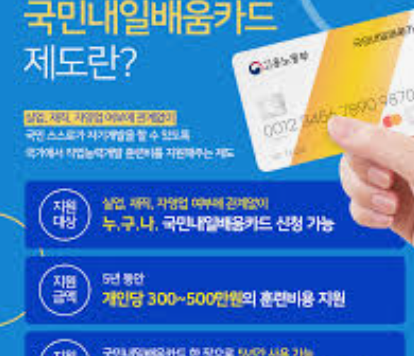 내일배움카드는 고용노동부가 운영하는 직업능력개발 지원 제도로, 청년부터 중장년층까지 모든 국민이 활용할 수 있습니다.