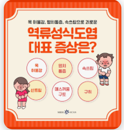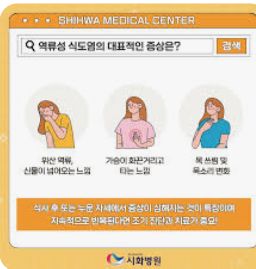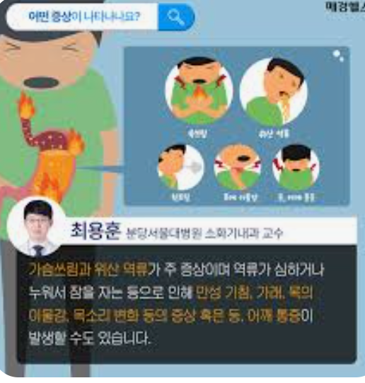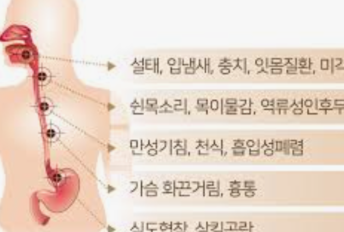 | 전형적 증상 | 속쓰림, 신물 역류, 가슴 화끈거림, 소화불량 |