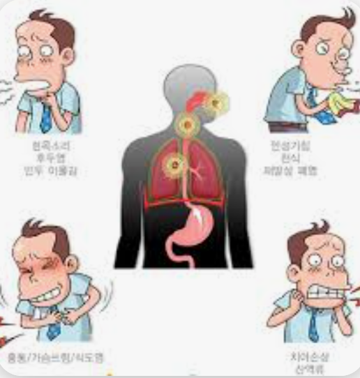 | 호흡기 증상 | 만성 기침, 쉰 목소리, 목 칼칼함, 천식 악화 |