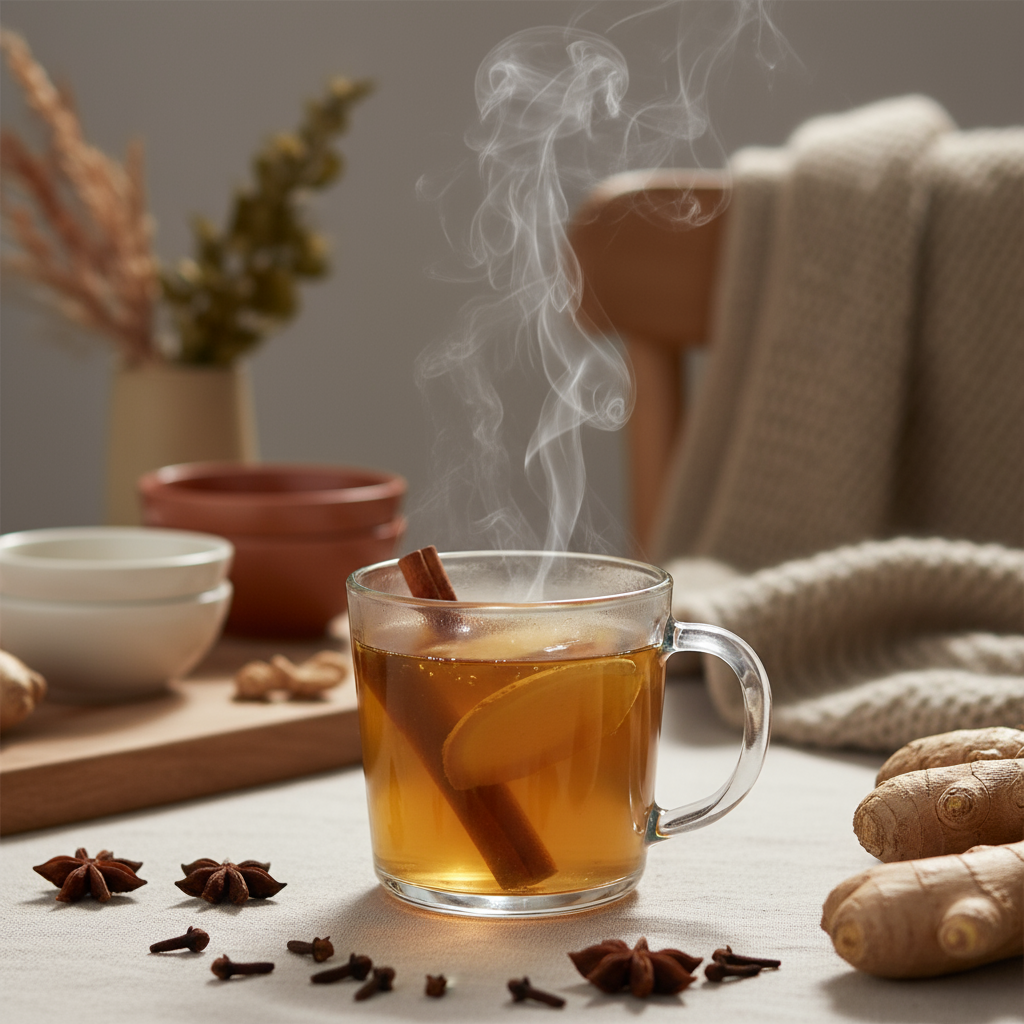 목이 칼칼하고 침 삼키기조차 힘들 때 이만한 게 없습니다. 생강의 진저롤과 쇼가올 성분은 몸의 찬 기운을 내보내고 혈액순환을 도와 체온을 높여줍니다.