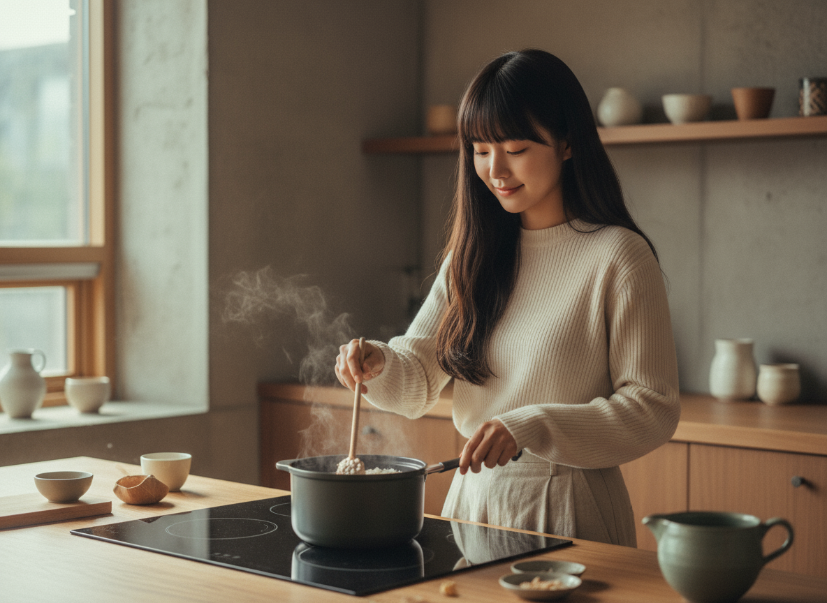 김장 당일 아침이나 전날 저녁에 미리 찹쌀풀을 쑤어 식혀둡니다. 물 1.5L에 찹쌀가루 100g을 넣고 잘 풀어준 뒤 중불에서 계속 저어가며 끓입니다. 걸쭉하게 끓어오르면 불을 끄고 완전히 식혀주세요. 찹쌀풀은 김치의 감칠맛을 높이고 양념이 배추에 잘 붙도록 도와줍니다.