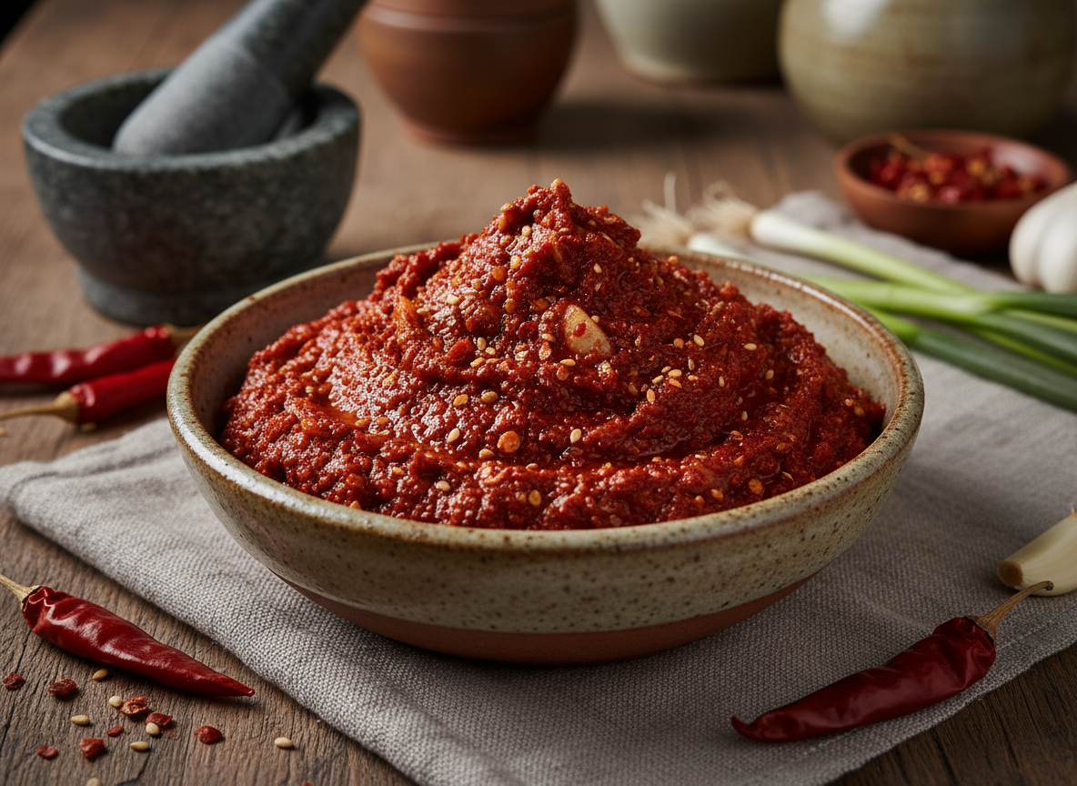 양념에 홍고추를 갈아 넣으면 색도 예쁘고 맛도 더 깊어집니다. 쪽파는 4~5cm 길이로 썰어서 준비해두세요 🌶️