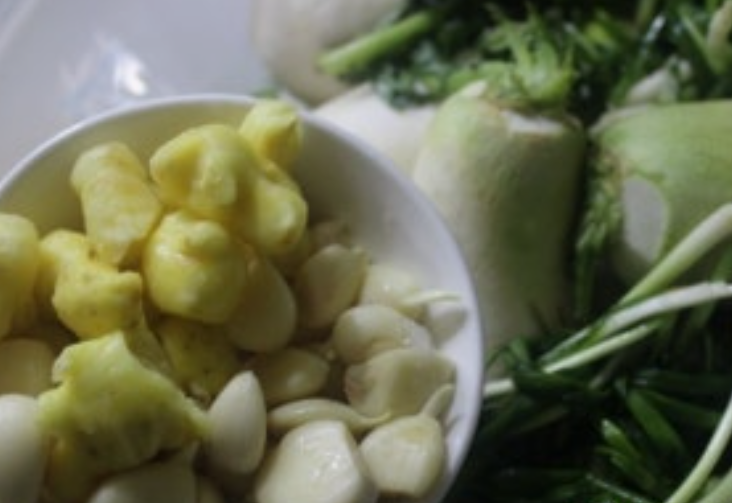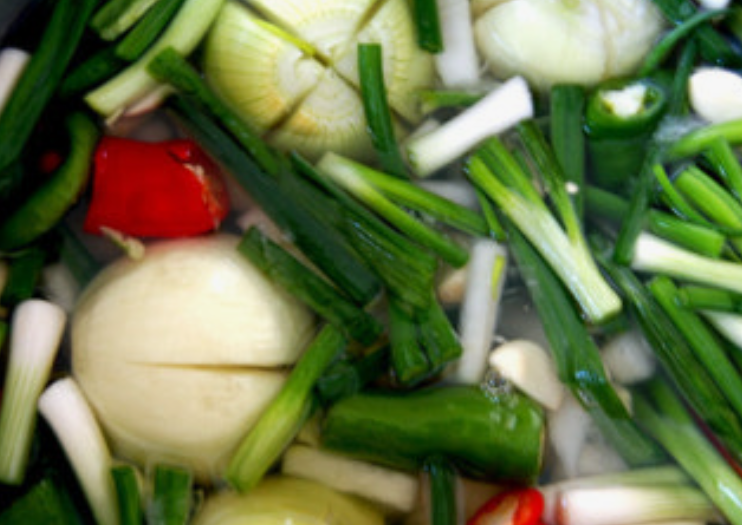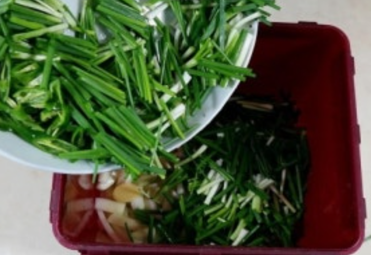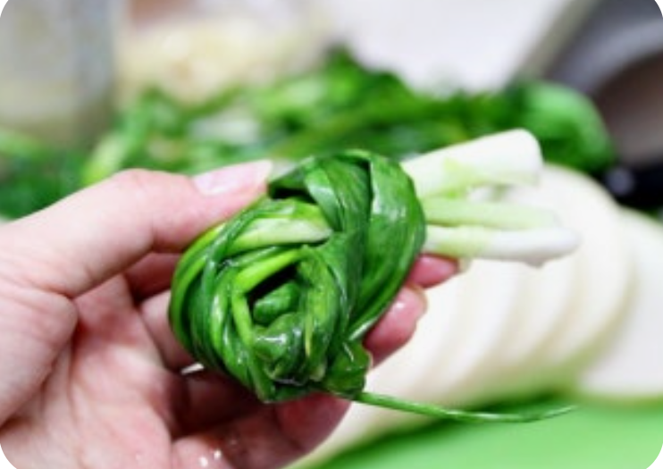 | 쪽파 또는 대파 | 1단 | 향과 맛 |