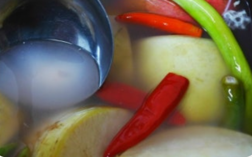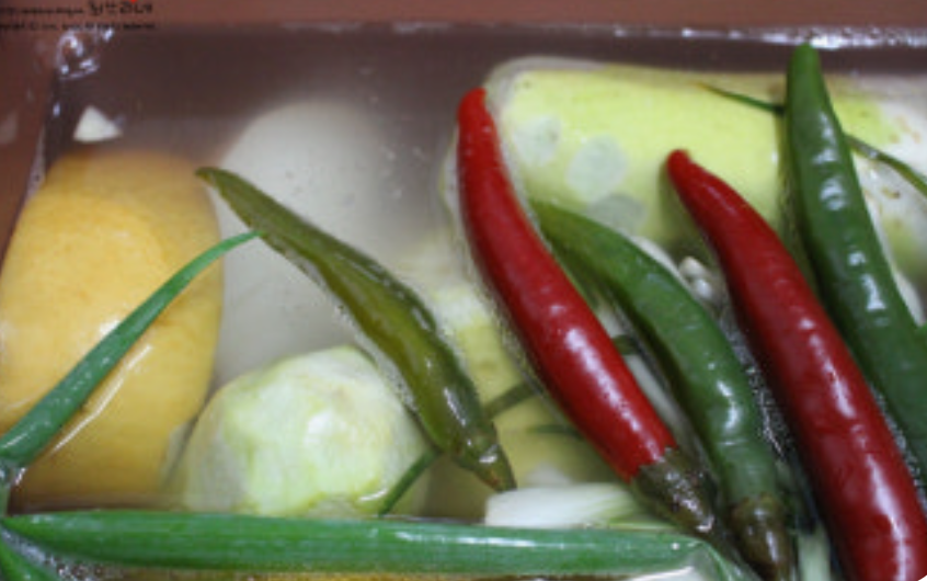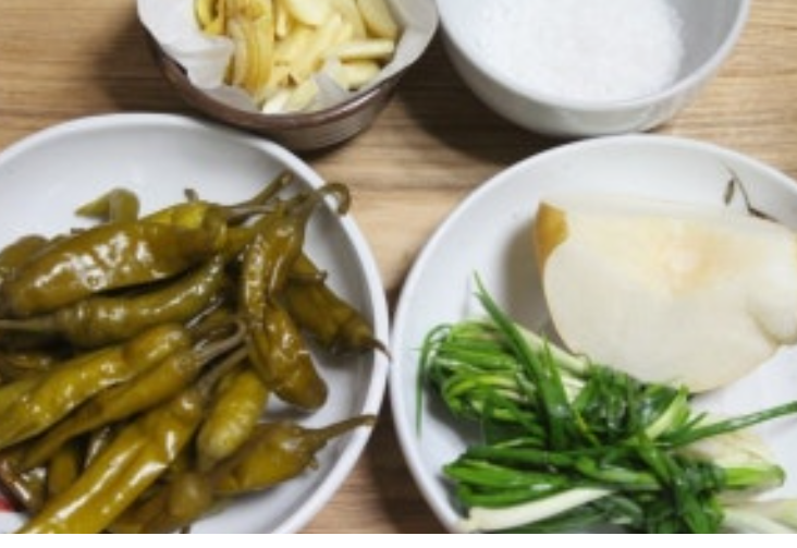 삭힌 고추는 선택 사항입니다. 하지만 넣으면 색감이 예쁘고 향과 맛이 훨씬 깊어져요. 전통적인 옛날 동치미 맛을 원한다면 삭힌 고추를 넉넉히 넣는 것을 추천합니다. 구하기 어렵다면 생략해도 무방합니다.
