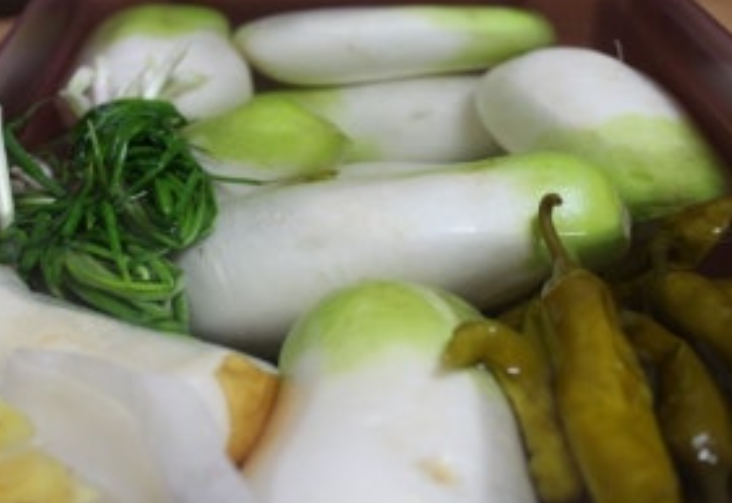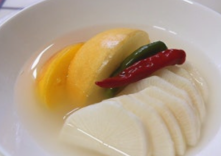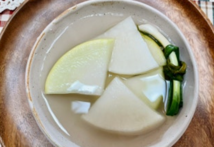 동치미는 한자로 동침(冬沈)에서 유래한 말로, 겨울에 먹는 김치라는 뜻입니다. 낮은 온도에서 천천히 익히면서 생기는 그 상큼하고 청량한 맛이 일품이죠. 특히 찐 고구마나 떡을 먹을 때 동치미 국물 한 모금이면 속이 뻥 뚫리는 느낌을 받을 수 있습니다.
