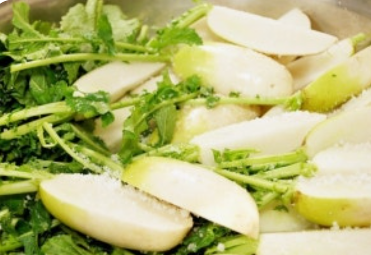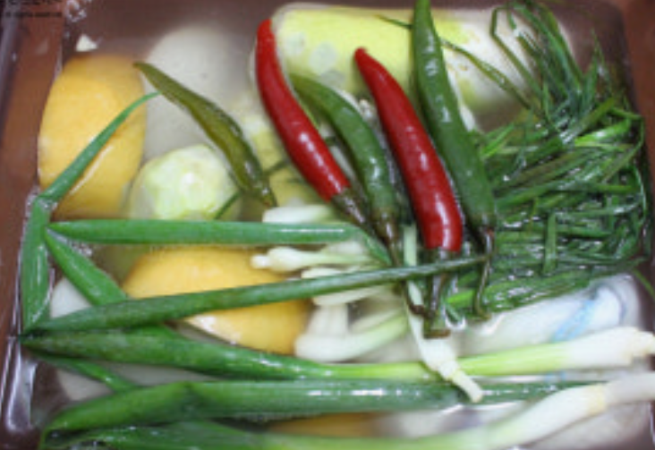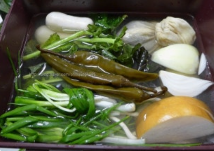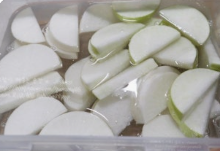 배 1개, 사과 1개, 양파 1~2개, 마늘 20~30쪽, 생강 1~2톨을 믹서기에 곱게 갈아주세요. 물 100ml 정도를 함께 넣으면 갈기 쉽습니다. 갈은 재료는 면포나 거즈에 담아 물 4~8리터에 조물조물 풀어줍니다. 이때 천일염 1/4컵과 설탕 1큰술을 넣어 간을 맞춰주세요.