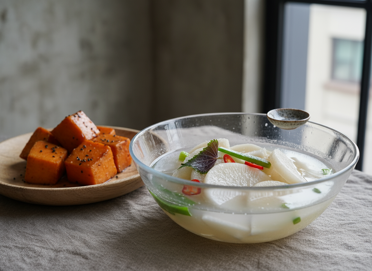 동치미 맛있게 담는법을 찾고 계신가요? 겨울철 무와 배, 쪽파로 만드는 시원한 동치미는 소화를 돕고 숙취 해소에도 좋은 우리 전통 발효음식입니다. 초보자도 쉽게 따라할 수 있는 재료 손질법부터 황금비율 국물 만들기, 숙성 기간까지 모든 과정을 상세하게 알려드립니다.