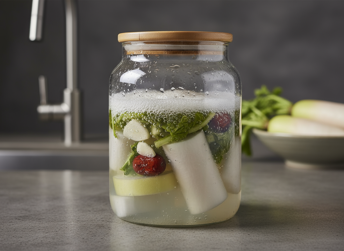 동치미는 단순히 맛있는 반찬을 넘어 건강에도 정말 좋은 발효식품입니다. 무에 들어있는 디아스타제와 아밀라제 같은 소화 효소가 소화를 도와주고, 발효 과정에서 생성되는 유산균은 장 건강에 탁월한 효능이 있어요.