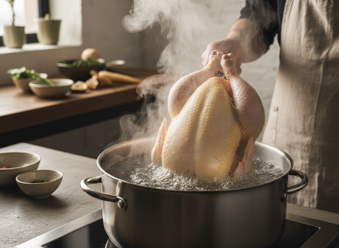 물이 다시 팔팔 끓어오르기 시작하면 약 3~4분 정도 더 끓인 뒤, 닭을 건져내 찬물에 재빨리 헹궈줍니다. 이때 불순물이나 뼛가루가 남지 않도록 깨끗하게 씻어내는 것이 중요합니다. 이 과정만 거쳐도 국물 맛이 비교할 수 없이 깔끔해진답니다.