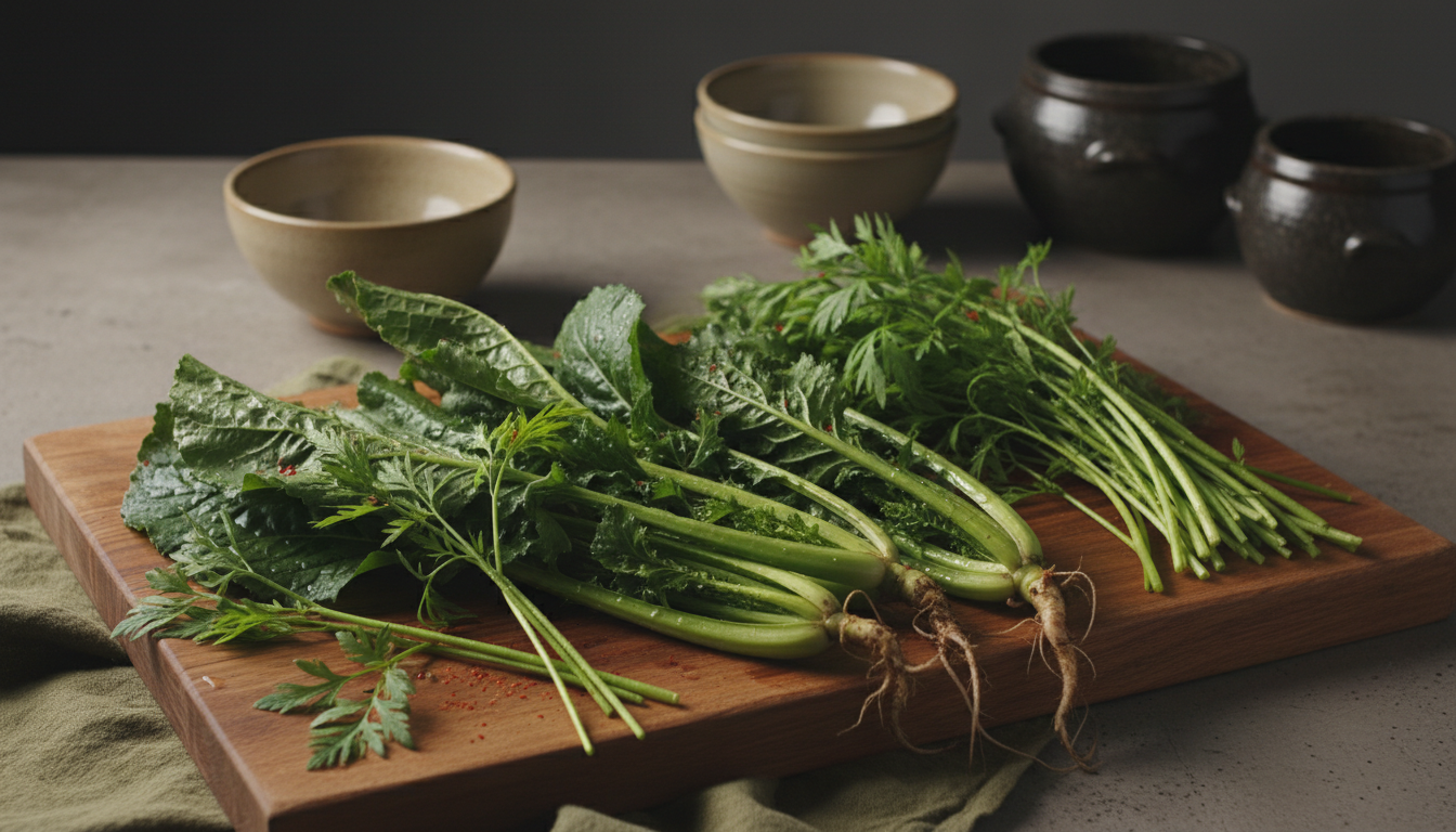 * 갓, 미나리 (선택): 갓 500g, 미나리 300g. 취향에 따라 넣으시면 됩니다. 갓은 시원한 맛을, 미나리는 향긋함을 더해줍니다.